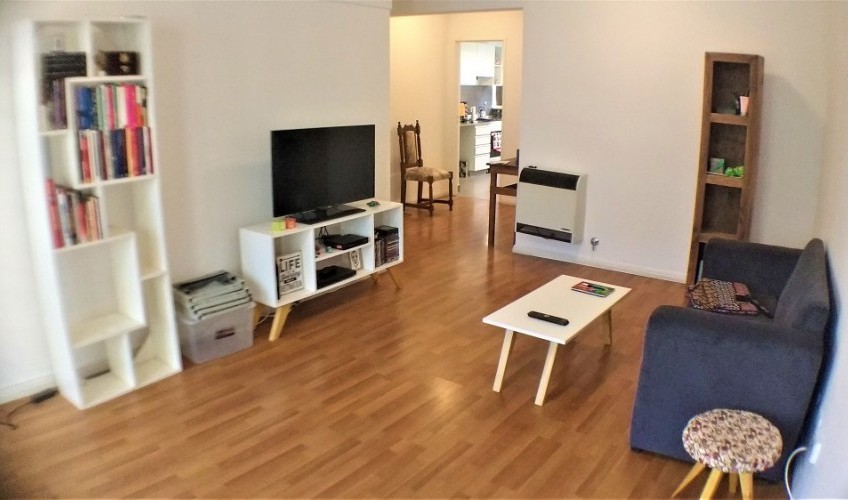 *Estar comedor con pisos de madera flotante. Calefactor catalítico. Salida a balcón con rejas.