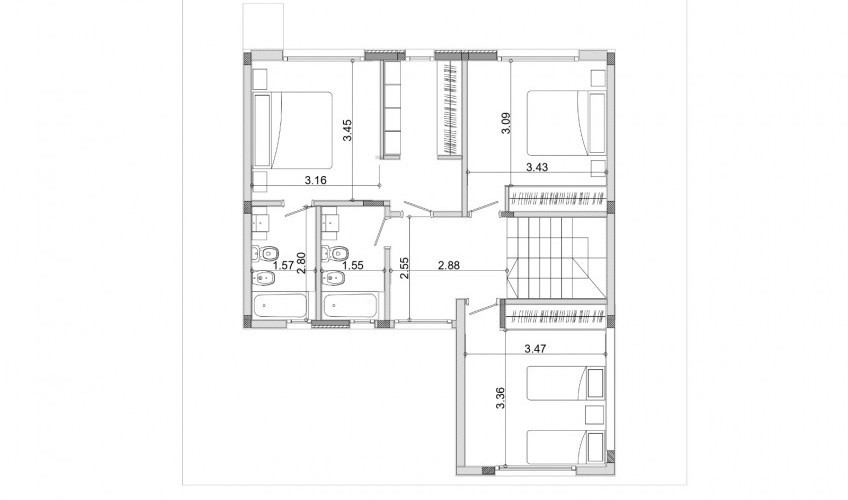 Planta Alta 3 dormitorios, uno en suite con vestidor, otro banio completo.